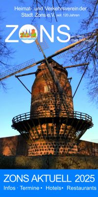 Alle Zonser Termine und Infos für das Jahr 2025 gibt es wieder in unserer neuen, kostenlos erhältlichen HVV-Veranstaltungsinfo "Zons Aktuell 2025". Die Infobroschüre gibt es in der Zonser Touristinfo, in den Zonser Gastronomiebetrieben und Geschäften und auch in Dormagen (Bürgeramt, Kulturbüro, Stadtbibliothek). Die 48-seitige Broschüre mit allen Zonser Terminen für 2025 enthält auch das aktuelle Hotel-, Zimmer- und Restaurantverzeichnis sowie 8 interessante Seiten zur Zonser Geschichte, ergänzt mit historischen Fotos und einem Lageplan von Zons um 1650. Auf Wunsch gerne auch per Versand (Mail an Diese E-Mail-Adresse ist vor Spambots geschützt! Zur Anzeige muss JavaScript eingeschaltet sein.) und hier auf der Webseite unter "News" als kostenloser Download. Wir freuen uns auf Ihren Besuch in unserer mittelalterlichen Zollfeste Zons am Rhein.